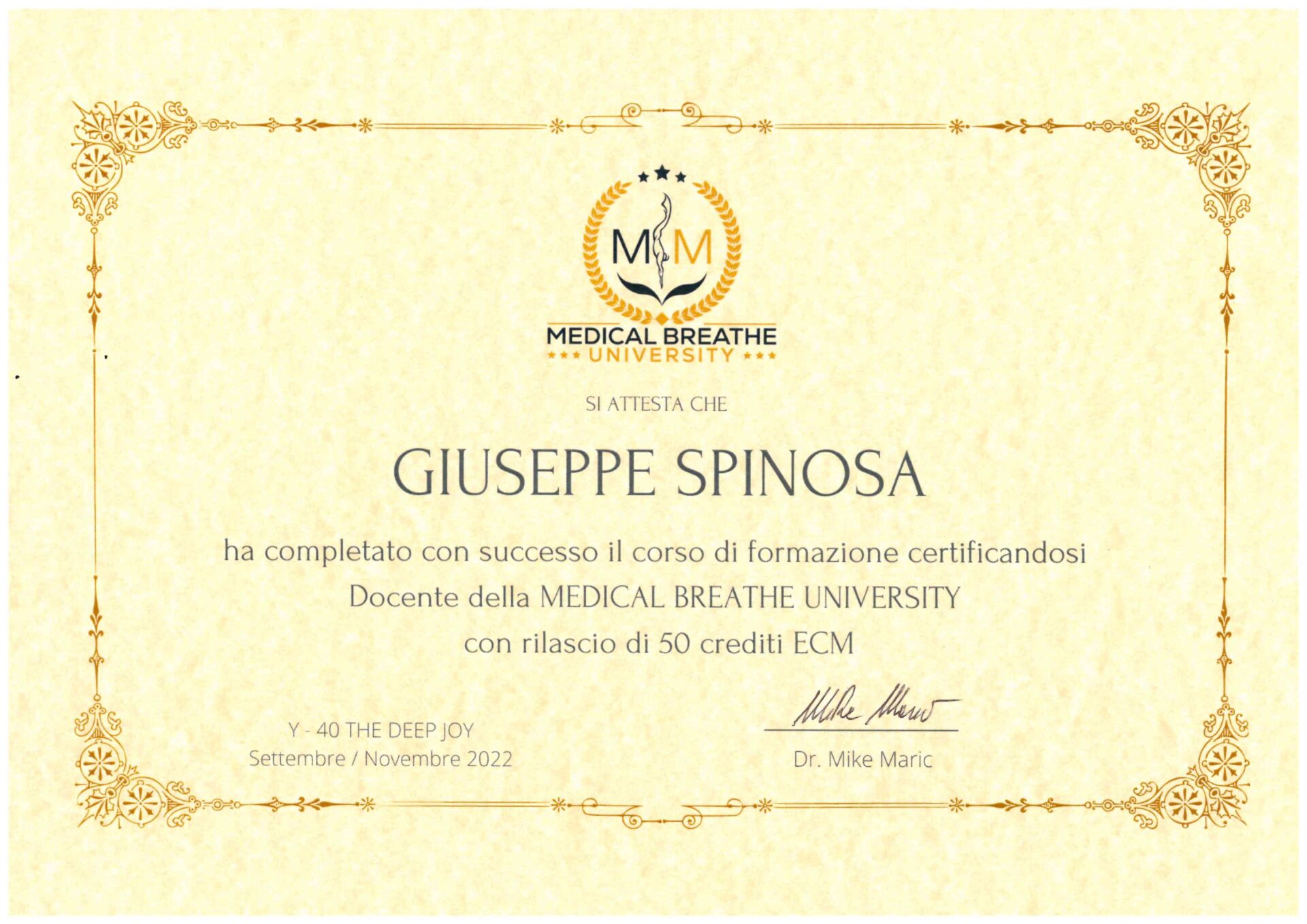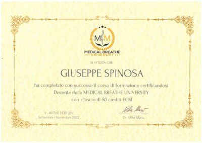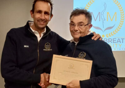 Dopo la laurea in Scienze Motorie, con la tesi “Allenamento respiratorio negli sport di resistenza: Ciclismo e Corsa”, consapevole dell’importanza della respirazione nello sport e non solo, ha approfondito lo studio frequentando il master specialistico teorico-pratico del Dott. Mike Maric, diplomandosi docente Medical Breathe University, MBU presso la Y-40 a Montegrotto T. (PD) e istruttore Airofit.