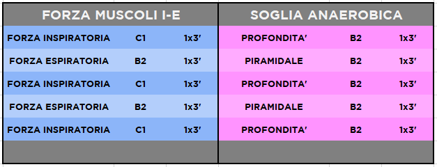 Un training respiratorio, deve essere programmato e strutturato per essere inserito nell’allenamento specifico della propria disciplina sportiva, seguendo una vera e propria routine, con warm-up respiratorio, lavoro specifico ipossico o ipercapnico a seconda degli obbiettivi.